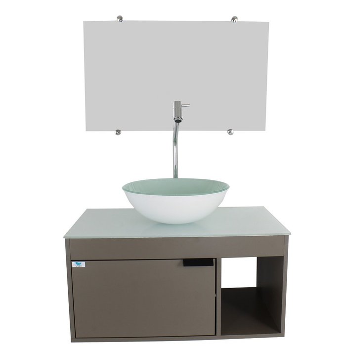 O nosso conjunto para banheiro é perfeito para você que busca por qualidade e modernidade para seu lar, são indicados para projetos arrojados e de muito bom gosto, além de valorizar o seu ambiente com sofisticação em uma decoração de alto padrão, ele consegue usufruir das vantagens e combinação perfeita de vidro e MDF/MDP.O tampo e a cuba de vidro são pintados com tinta de alta performance, o que lhe garante a permanência da cor original.O armário e produzido em MDF/MDP com acabamento acetinado com bilho.Dados Técnicos Itens Inclusos:- Tampo de vidro temperado com furo para instalação da torneira de (3,5cm diâmetro) e da válvula click (4,5cm diâmetro)- Cuba de vidro- Espelho incolor- kit parafusos completo para instalação- Válvula clickDimensões:- Tampo de vidro temperado: 61cm x 36cm (largura x profundidade)- Cuba de vidro: 31cm (diâmetro)- Espelho: 60cm x 35cm (largura x altura)- Válvula: 1" 1/4Espessuras:- Tampo de vidro temperado: 6 mm- Cuba de vidro: 6 mm- Espelheira: 3 mmRecomendações de Uso: Limpar com pano umedecido seguido de pano seco.Garantia: 3 meses (conforme política de troca e devoluções).Atenção: Preço referente somente ao gabinete, não acompanha torneira.Montagem: Montagem e instalação não inclusa na venda ou preço do produto, elas são de inteira responsabilidade do cliente.* Imagens Ilustrativas.