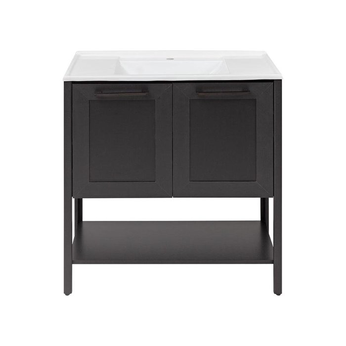 Gabinete Armário Banheiro Ditália 2 Portas Com Pia BN-02 cor:preto Branco