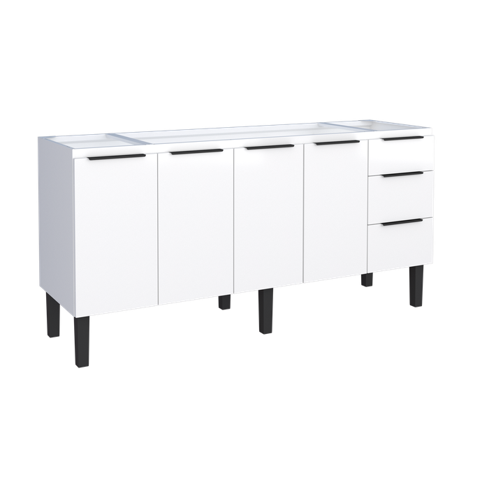 Gabinete Armário Cozinha Jupter Cozimax 1.80 Mt 100% Aço P/ Pia -balção 180 Cm -4 Portas- 3 Gavetas Branco