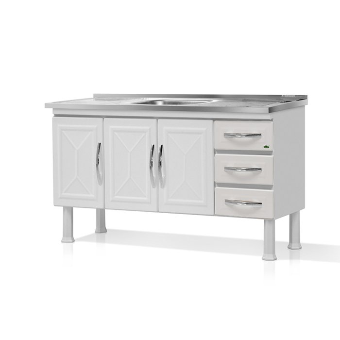 GABINETE ARMARIO DE COZINHA AÇO P/PIA 1.50 DESM. 3 GAVETAS ELLOS BRANCO- MARROART