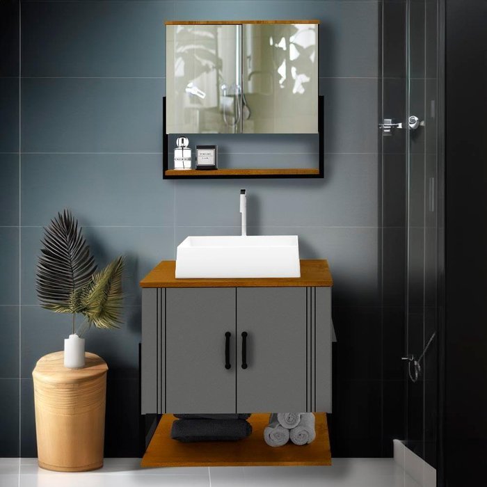 Gabinete Armário Para Banheiro 60 Cm Com Espelheira E Cuba Titanium Naturalle Lide Shop Jm