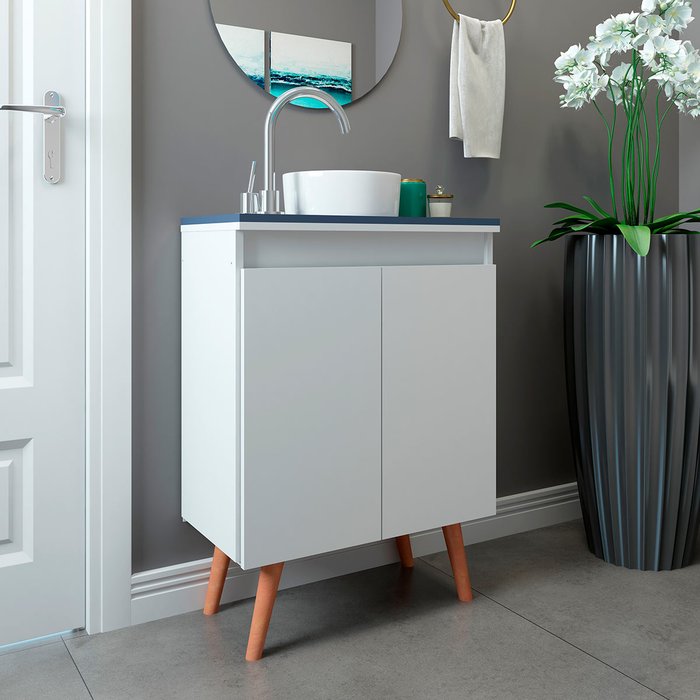 Gabinete Armário para Banheiro 60 x 85 cm 2 Portas Pés em Madeira MDP Branco 0656 - MENU