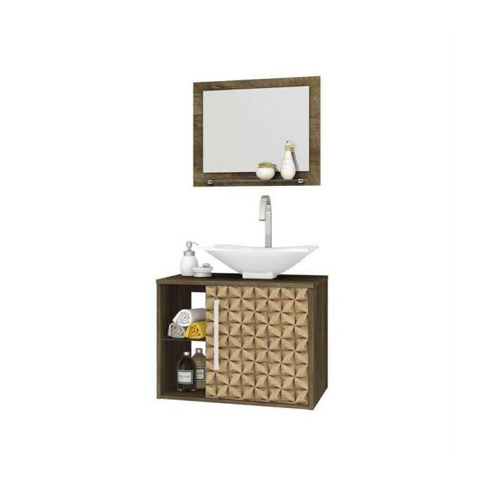 Gabinete Armario para Banheiro com Pia Baden Madeira/Madeira 3D