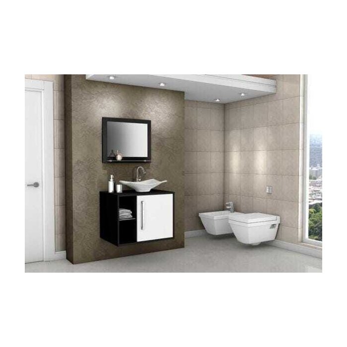 Gabinete Armário para Banheiro com Pia Baden Preto_branco Branco/Preto