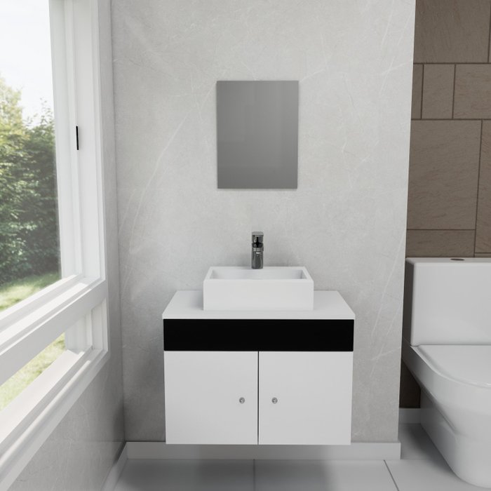 Gabinete Armário para Banheiro com Pia Cuba Quadrada Mármore e 60cm Balcão Suspenso