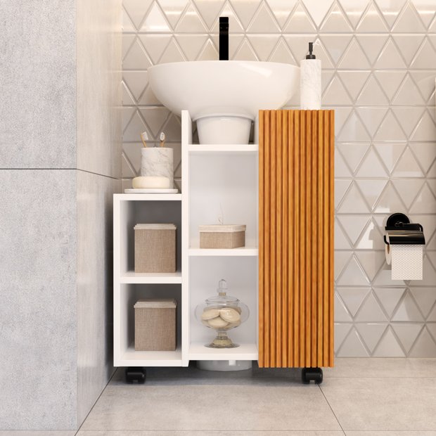 Gabinete Para pia de coluna, tem o designer que falta para completar o seu banheiro. Perfeito para quem gosta de organização e ideal para você que tem em sua residência pia com coluna, somente encaixar e surpreender-se com a facilidade e praticidade desta peça. Além de ser fabricado com materiais de altíssima qualidade, proporcionará funcionalidade na limpeza, conta com a diversidade nas opções de cores na hora da montagem, você escolhe, alta combinação e perfeita para seu ambiente! :)