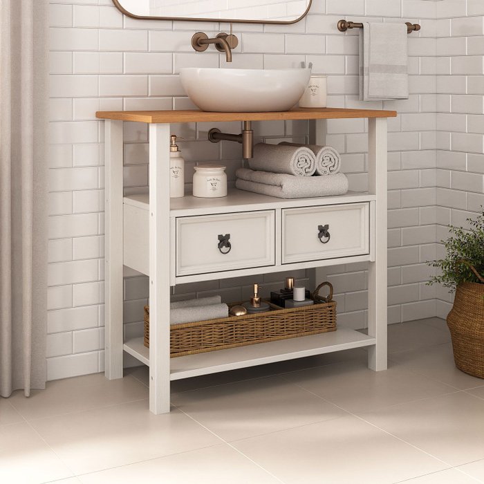 Gabinete Armário Provençal Banheiro Tampo 2 Gav Madeira Tequila Branco Freijó Idimex