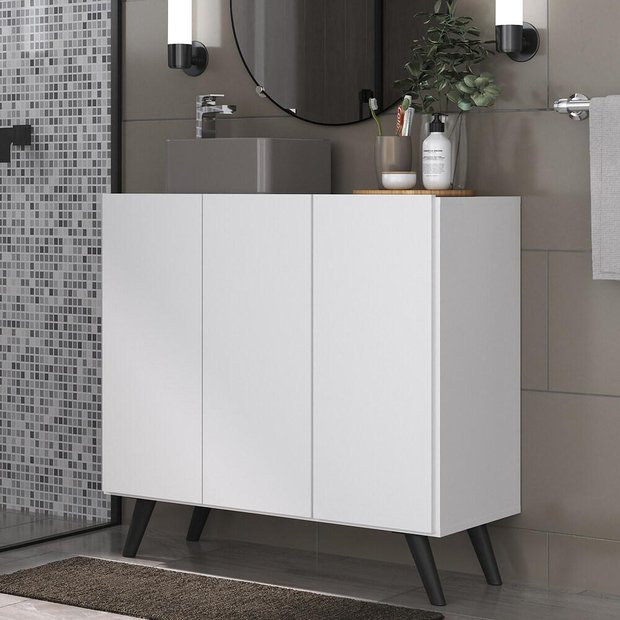 O Gabinete Banheiro 3 Portas Retrô 90cm Multimóveis MP5030 é produzido em MDP com acabamento acetinado (cerca de 20% de brilho), que garante maior durabilidade, facilidade na limpeza, além de um acabamento superior. Com 3 portas, possui um excelente espaço interno para organizar itens de higiene, toalhas e demais objetos (as prateleiras internas suportam 2 e 5 Kg e o tampo 7 Kg). Os pés retrô, em polipropileno, dão um charme especial ao móvel deixando-o com um visual leve e permitindo você compor um ambiente com ar vintage e moderno ao mesmo tempo. Uma ótima opção para deixar seu banheiro bonito, prático e organizado. Não acompanha torneira e cuba.