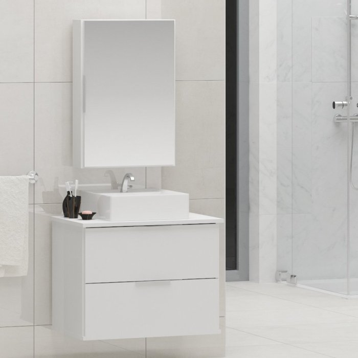 Gabinete Banheiro 60cm com Cuba Sobrepor e Espelheira Rubi Gabinetes Joia Branco