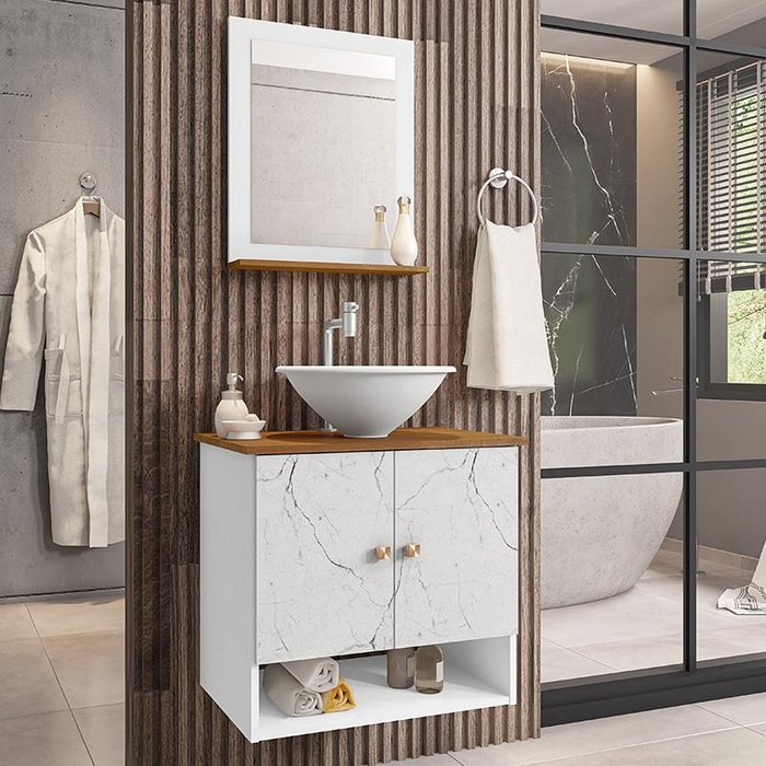 Gabinete Banheiro Deli Cuba Lume Bco Torneira Val Click Inox Branco/carrara/nature