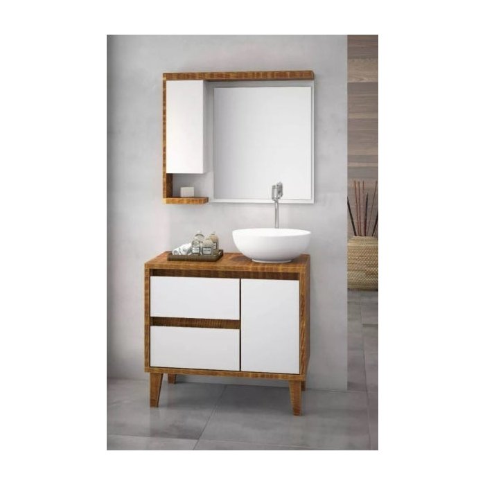 Gabinete Banheiro Palizzi 80 - Balcão + Esp+ Cuba com Branco