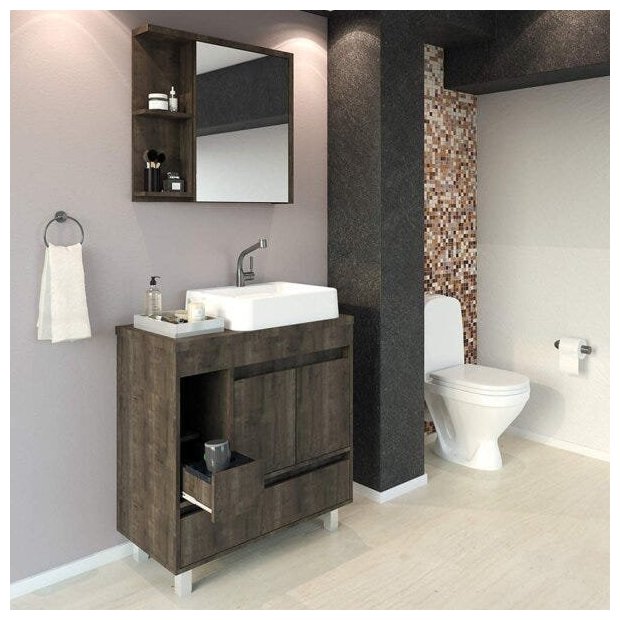 Moderno e exclusivo, o conjunto Nikko trás ao ambiente conforto e praticidade, isso devido ao seu amplo espaço interno. Seu design ousado o faz destaque em diversos banheiros e lavabos. Pensando no conforto de utilização, o produto apresenta gaveta para armazenamento de acessórios com porta fios, que funciona para acomodar secadores, chapinhas, babyliss e outros. Tais itens podem ser armazenados ainda quentes devido ao suporte em granito natural com função térmica, isolando o calor do material do móvel e dos fios.