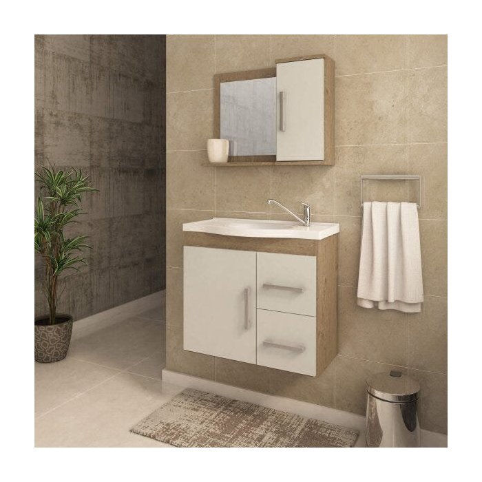 Gabinete de Banheiro 1 Cuba 1 Espelheira 2 Portas 2 Gavetas Vix Mgm Móveis Carvalho/Off White