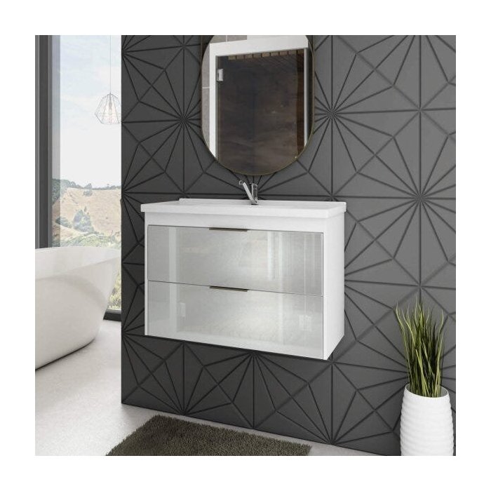 Gabinete de Banheiro 1 Cuba Porta Basculante 1 Gaveta de Vidro 79cm Lavanda Mgm Móveis Branco