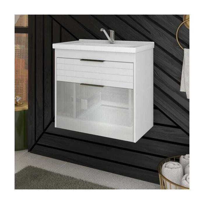 Gabinete De Banheiro 100% Mdf Azaleia 59 Cm Porta Vidro - Mgm Branco/Branco