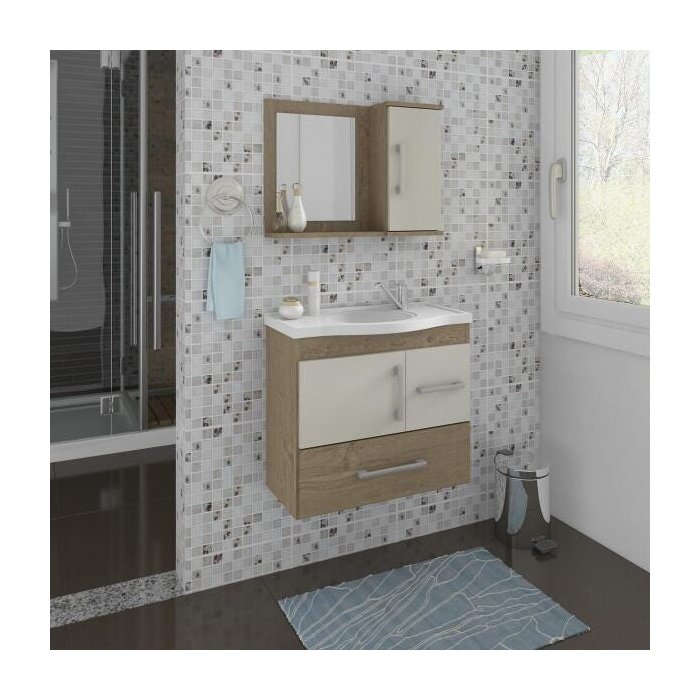 Gabinete De Banheiro 100% Mdf Fortaleza 65 Cm Com Espelho - Mgm Carvalho/Off White