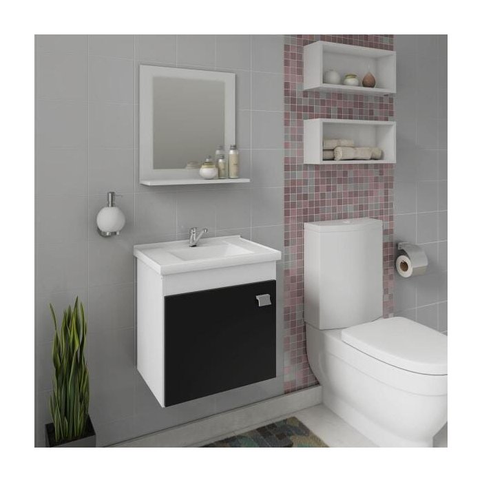 Gabinete De Banheiro 100% Mdf Iris 44 Cm Com Espelho Branco/Preto – Mgm