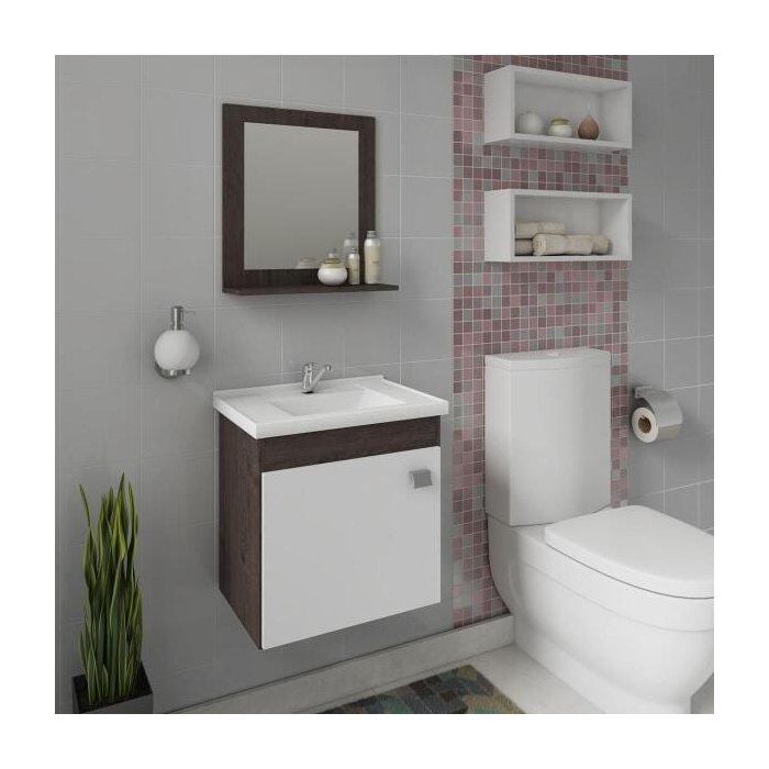 <p><strong>Gabinete De Banheiro 100% Mdf Iris 44 Cm Com Espelho Cafe/Branco - Mgm</strong></p> <p>Armário para banheiro suspenso com espelheira, espelheira com uma prateleira, puxador em ABS, estrutura 100% MDF, amplo espaço interno, lavatório 100% mármore sintético com mais durabilidade e resistência.</p> <p><b>Não acompanha torneira.</b></p> <p><b>Dimensões do Produto:</b></p> <p><b>Altura: </b>46 cm </p> <p><b>Largura: </b>44,8 cm </p> <p><b>Profundidade:</b> 31,5 cm</p>