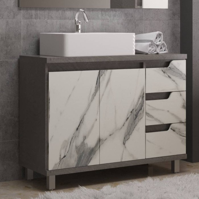 Gabinete de Banheiro 100cm com Cuba Ref 1000 Cewal Basalto/thassos