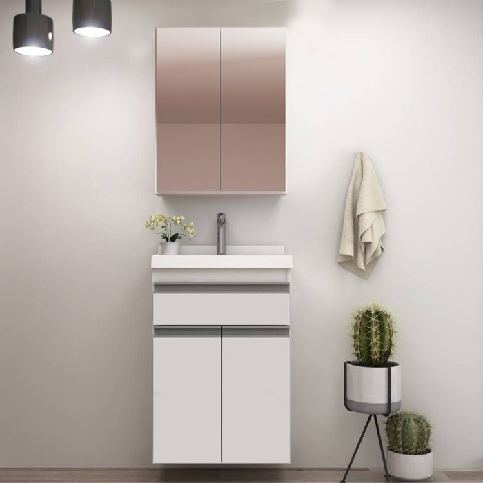 Gabinete de Banheiro 50cm com Lavatório e Armário Ref 501