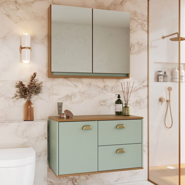 Gabinete de Banheiro 80cm 100% Mdf com Espelheira 2 Portas sem Cuba Lívia Freijó/Moscatel