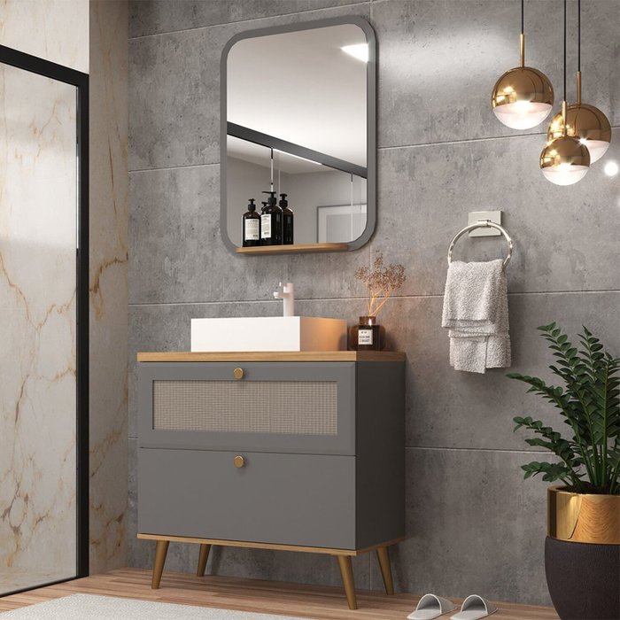 Gabinete de Banheiro 80cm com Cuba e Espelho Ref 800 Cinza/Itapuã