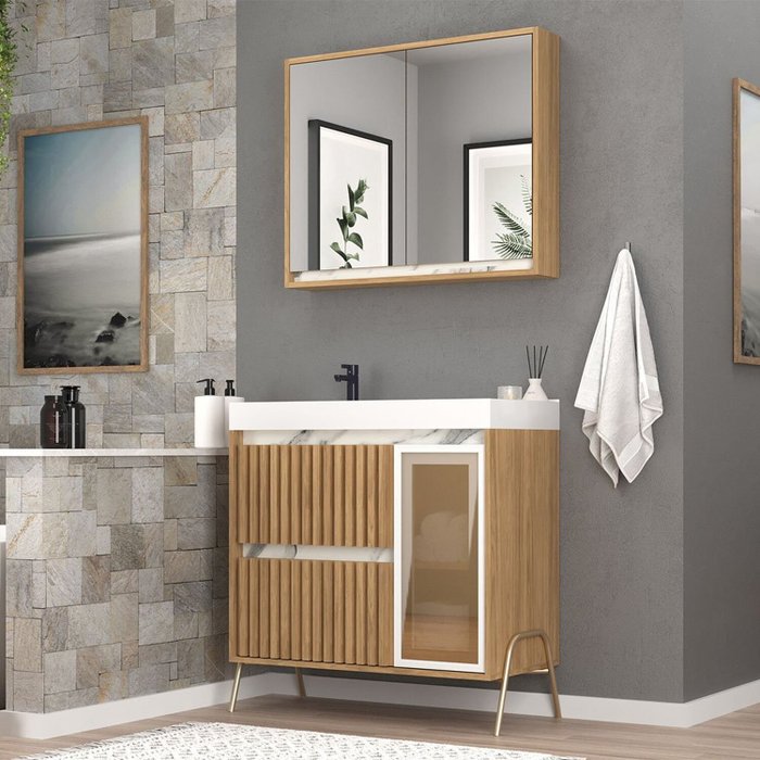 Gabinete de Banheiro 80cm com Lavatório e Armário Ref 890