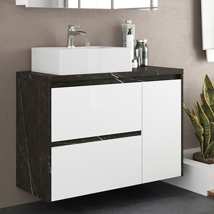 Gabinete de Banheiro 90cm com Cuba Ref 920 Cewal - Portoro/branco