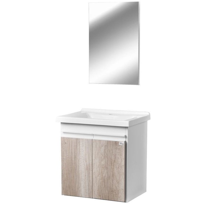 Gabinete de Banheiro com Espelheira Kit Maceió 45cm Cor:branco-barrique