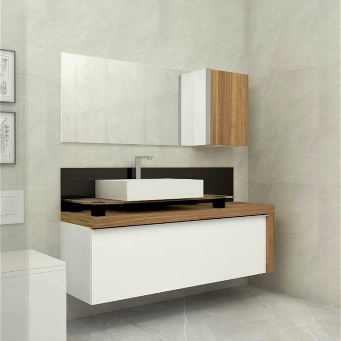 Gabinete de Banheiro Cristalo 120cm com Cuba 044 Branco/Nogueira Boreal