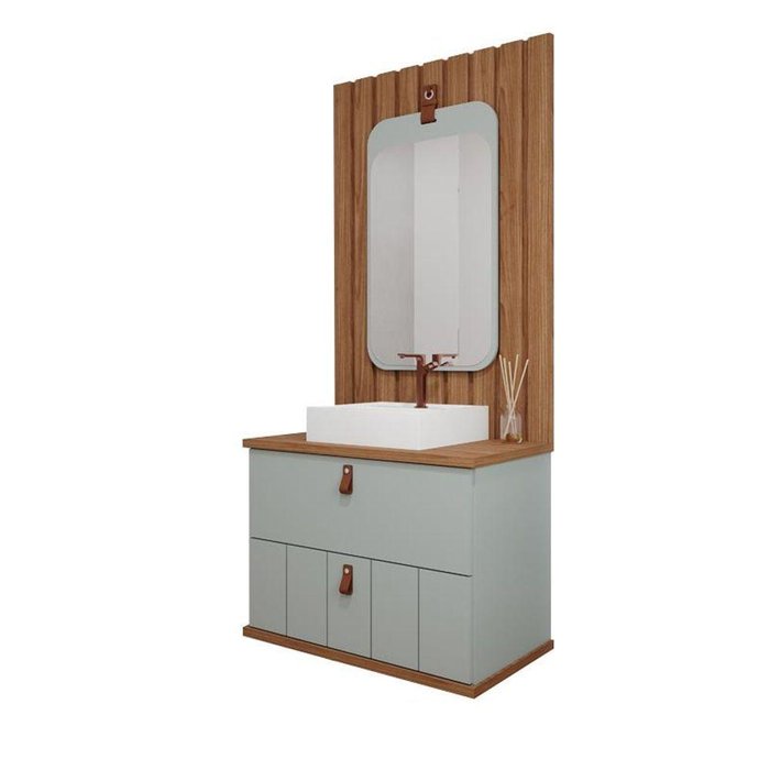 Gabinete de Banheiro Milano 60, Espelho Monet e Painel Pistache Freijo Mgm