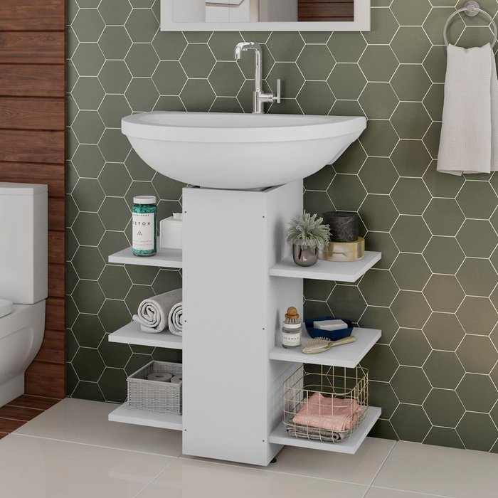 Gabinete de Banheiro Para Pia Coluna 6 Prateleiras Flex Color Branco Mark