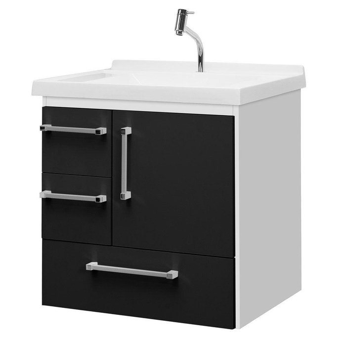 Gabinete de Banheiro Porto Alegre 60cm Cor:branco-preto