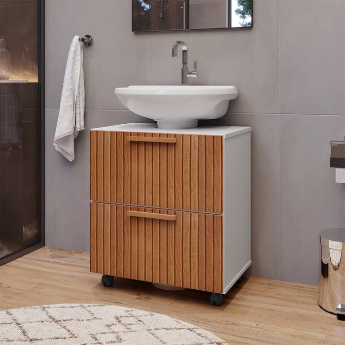 Gabinete de Banheiro Prime Armário para Pia de Coluna Ripado