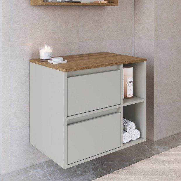 Gabinete de Banheiro Suspenso 60cm com 2 Nichos 1 Porta Basculante e 1 Gaveta sem Cuba Mel/Arenas