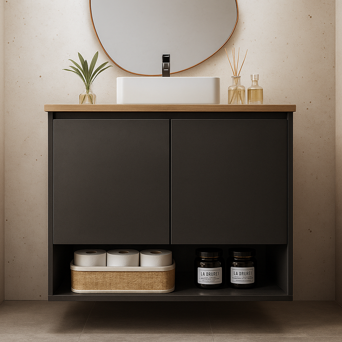 Com 70cm de largura, este gabinete de banheiro suspenso une funcionalidade e sofisticação em um design minimalista e contemporâneo. Fabricado com materiais de alta qualidade, sua estrutura resistente oferece durabilidade, mesmo em ambientes úmidos, mantendo a elegância ao longo do tempo.