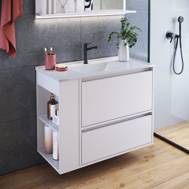Gabinete de Banheiro Suspenso 80cm Estela com 01 Gavetão, 1 Basculante com Lavatório Branco