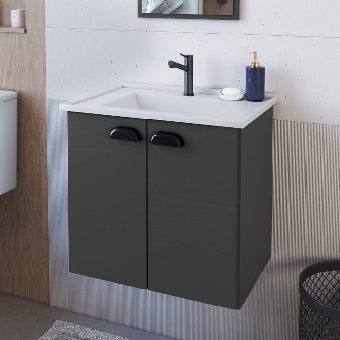 Gabinete de Banheiro Suspenso Dallas com 2 Portas e Pia Embutida Yescasa Grafite