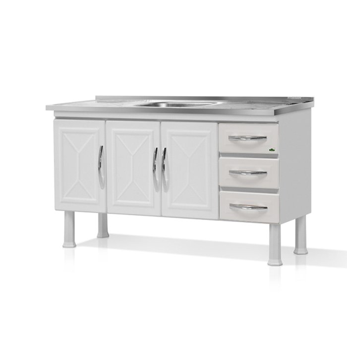 GABINETE DE COZINHA 100% AÇO PARA PIA 1.50 MT 3 PORTAS 3 GAVETAS -BRANCO -MARROART