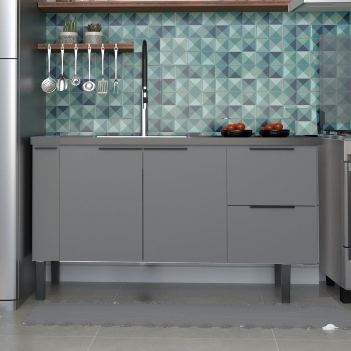 Gabinete de Cozinha para Pia 150cm 2 Portas 3 Gavetas Cozimax Cinza