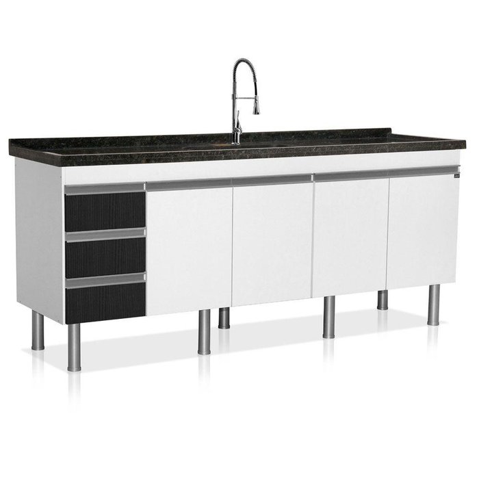 Gabinete de Cozinha Salvador para Pia de 1,74 M Cor:branco-nero branco/nero