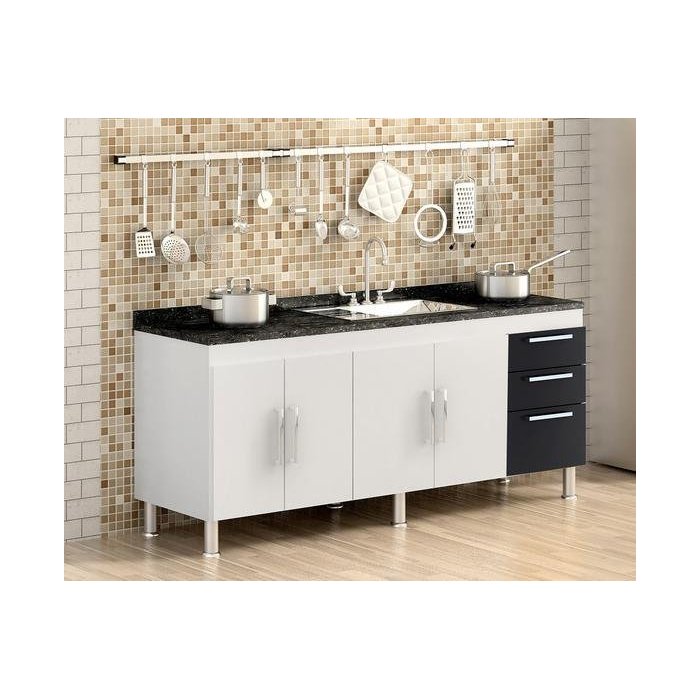 GABINETE PARA PIA | Este gabinete é produzido especialmente para pias de 1,80m, possui 3 gavetas com corrediças metálicas para melhor armazenar os itens de cozinha e conta com uma prateleira profunda completa no seu interior. Possui puxadores modernos e 5 pés para evitar empenamento da base, o gabinete é totalmente fabricado em MDP de 12mm, aumentando a durabilidade, resistência e qualidade do produto. O gabinete NÃO ACOMPANHA o tampo da imagem. Além desses detalhes possui uma facil montagem.