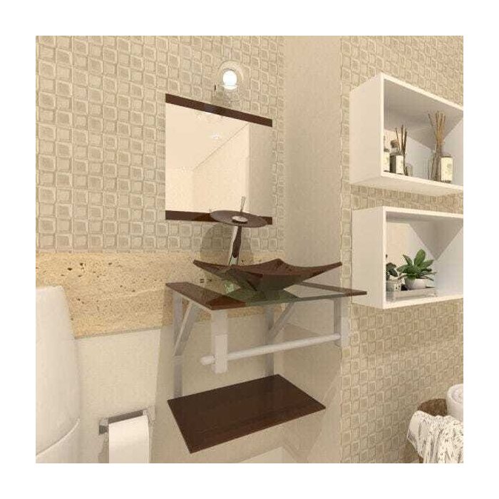 Gabinete de Vidro 40cm para banheiro Quadrado - Armênia-Marrom