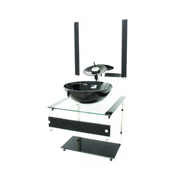 GABINETE DE VIDRO 45CM IT INOX COM CUBA REDONDA - PRETO EK
