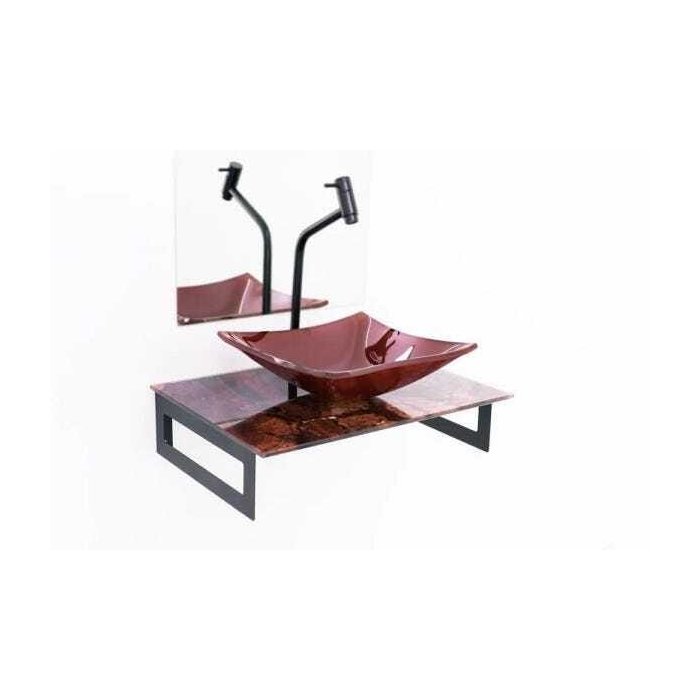 GABINETE DE VIDRO 50CM PARA BANHEIRO CHIPRE MÁRMORE AVERMELHADO EK Mármore Avermelhado