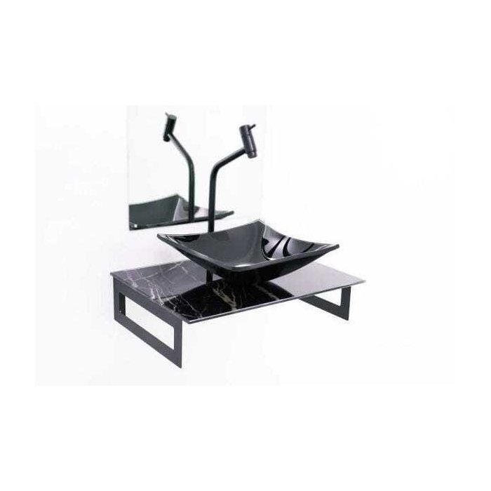 GABINETE DE VIDRO 50CM PARA BANHEIRO CHIPRE MÁRMORE PRETO EK Preto