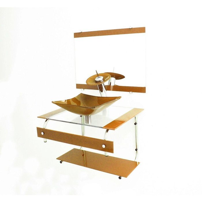 Gabinete de Vidro 60cm Inox com Cuba Quadrada Dourado Real