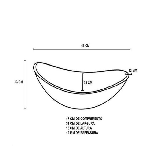 - Cuba de Vidro Oval: 47 x 31 cm (comprimento x largura)