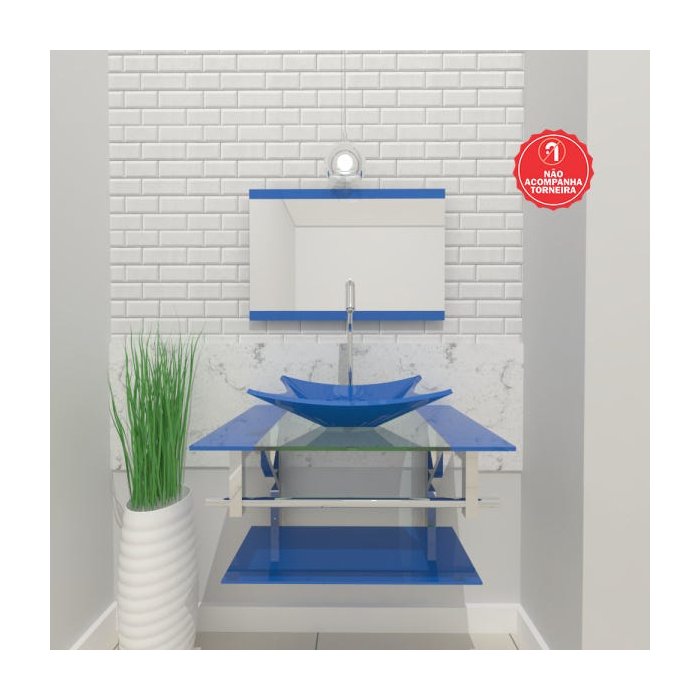 GABINETE DE VIDRO 60CM IQ INOX COM CUBA QUADRADA - AZUL EK