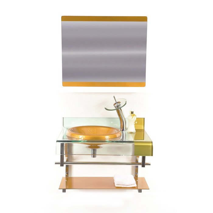 Gabinete de Vidro 70cm Curvado Duplo Inox com Cuba Chapéu - Dourado Real